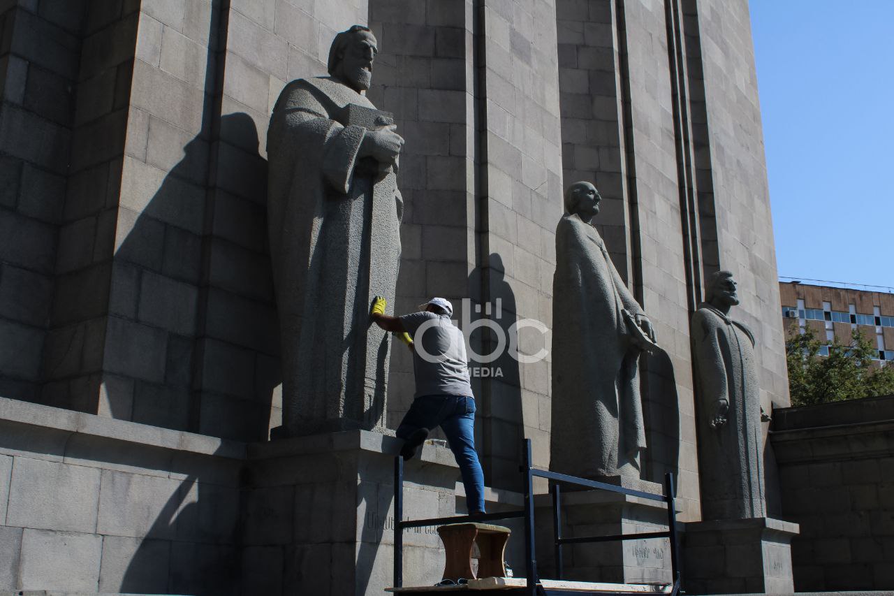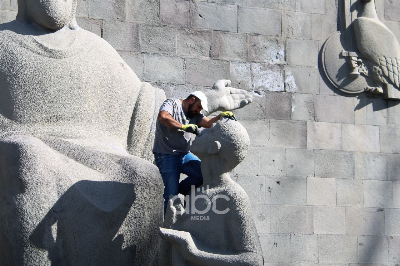 Մատենադարանի հանրային կապերի բաժնի ղեկավար Էմմա Հոռոփյանը ABC media-ի հետ զրույցում տեղեկացրեց, որ վերականգնումն իրականացվում է տարիների ընթացքում եղանակային ազդեցության հետևանքով վնասված հատվածներում։ Նրա խոսքով՝ վնասված են եղել թե՛ Մատենադարանի հարակից սալահատակները, թե՛ արձանախումբը, որոնք վերջին անգամ վերականգնվել են դեռևս 2000-ականների սկզբին։