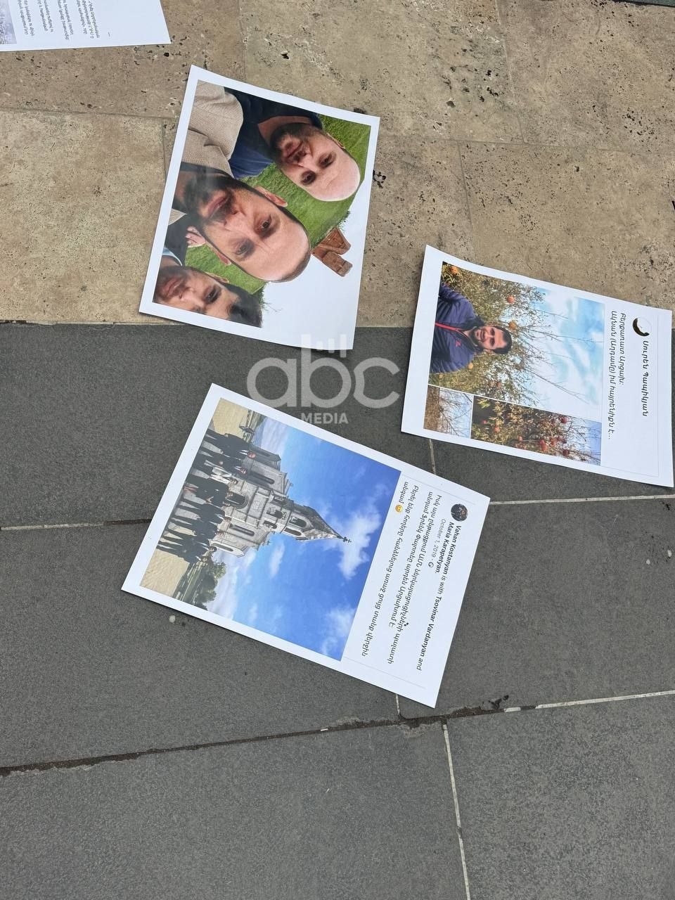 «Մեր հայրենիքը վաճառքի ու սակարկման ենթակա չէ»․ Կառավարության շենքի դիմաց՝ գետնին, իշխանականների լուսանկարներն են, որոնք արվել են տարիներ առաջ՝ Արցախում։ ՀՅԴ Հայաստանի երիտասարդական միության անդամներն են դրանք բերել։