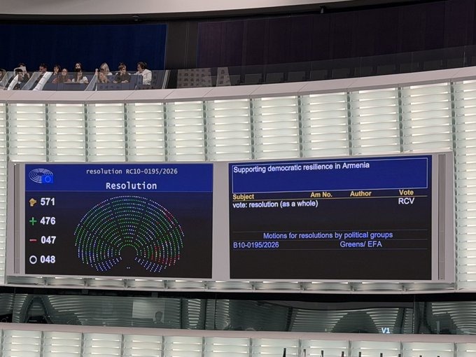 Եվրախորհրդարանը 476 կողմ, 47 դեմ և 48 ձեռնպահ ձայնով ընդունեց Հայաստանի ժողովրդավարությանը սատարող բանաձևը: