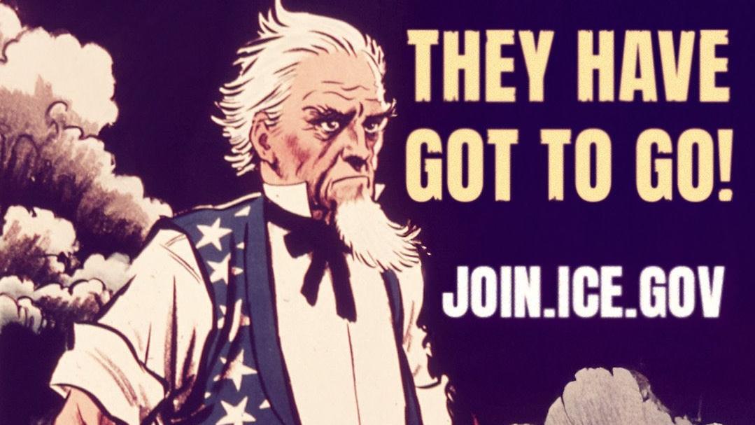 Գրառմանը կից հրապարակվել է մի պաստառ, որտեղ պատկերված է Քեռի Սեմը, որը կոչ է անում ամերիկացիներին միանալ ներգաղթային ոստիկանության շարքերին։