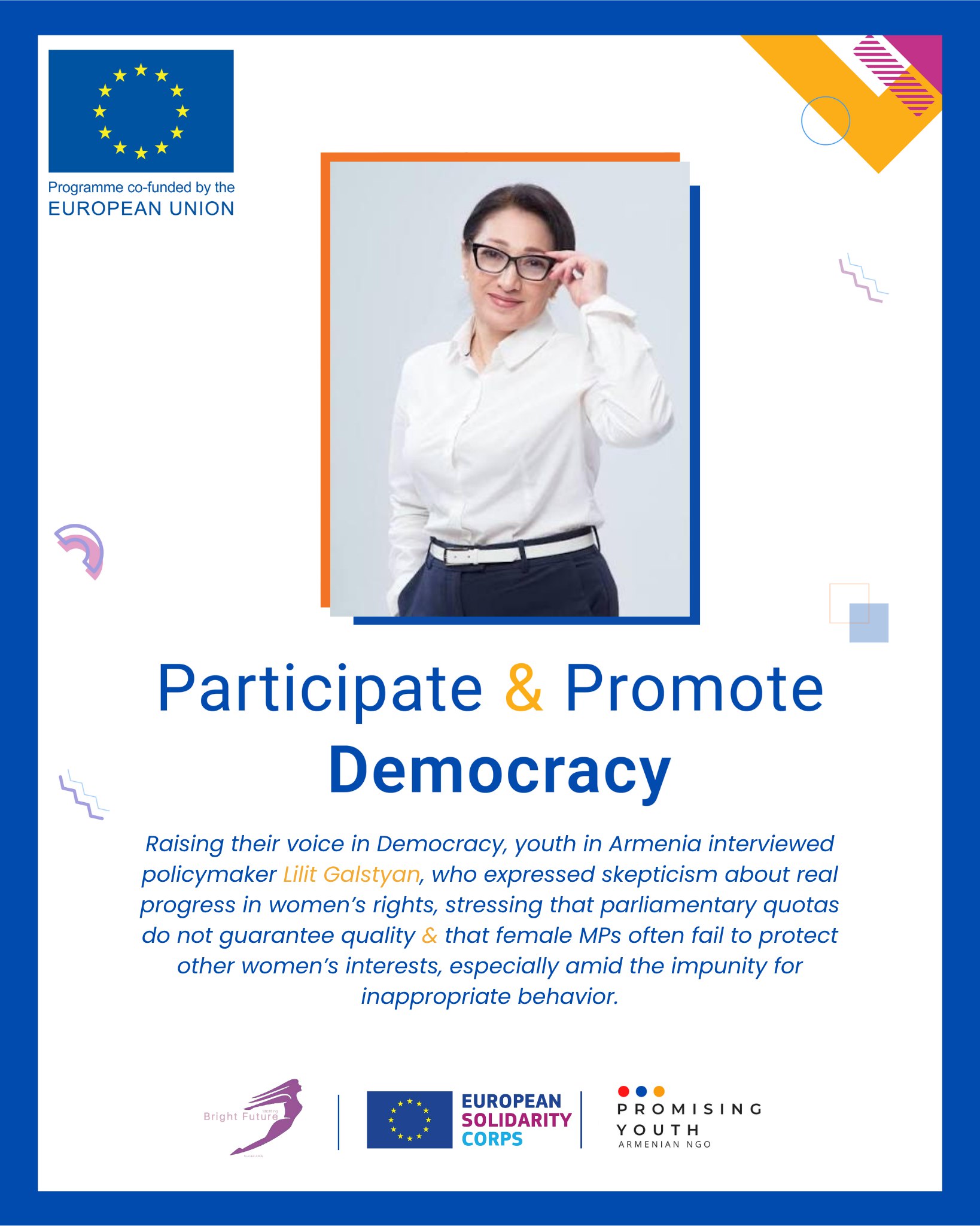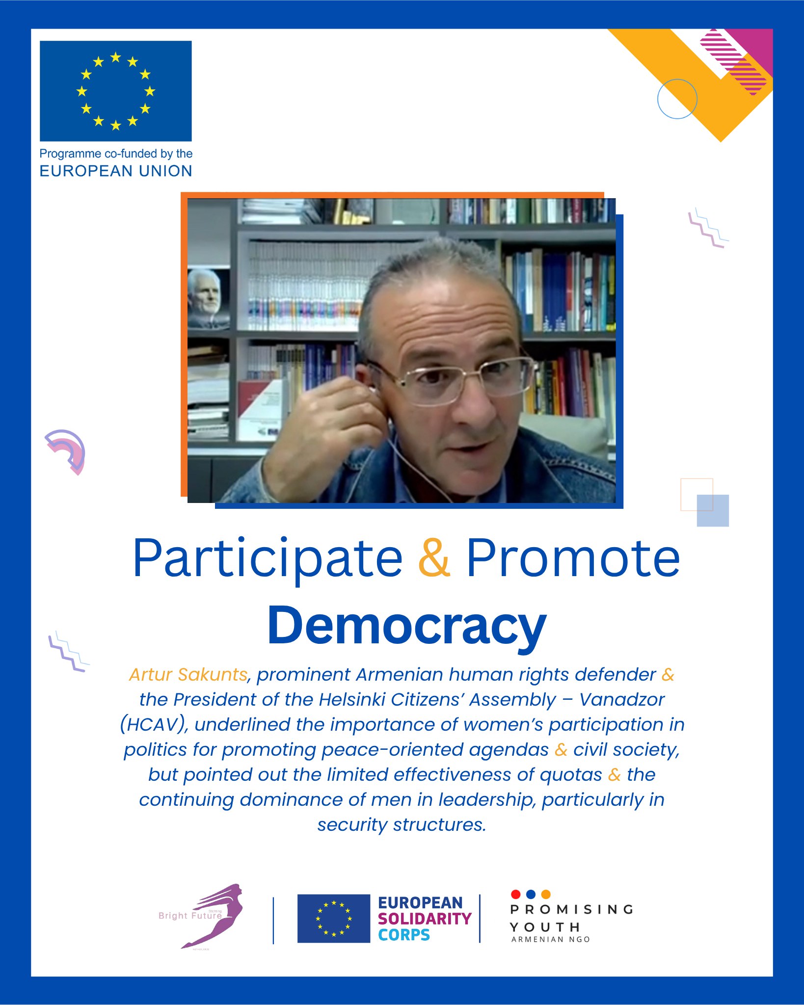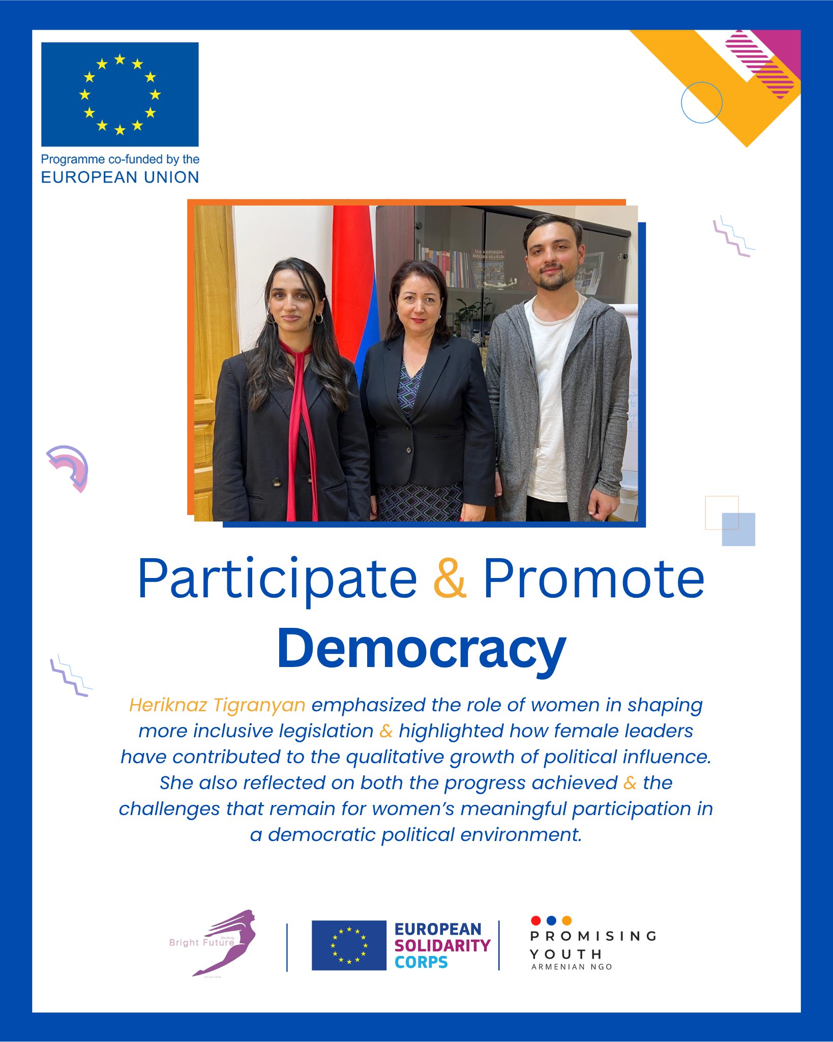 Հոդվածը ստեղծվել է Participate and Promote Democracy Եվրամիության ծրագրի շրջանակում՝ Bright Future նիդեռլանդական կազմակերպության և Promising Youth Հայաստանյան կազմակերպության անդամների կողմից։