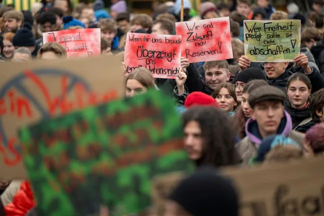 Գերմանիայի տարբեր քաղաքներում դեռահասները դեկտեմբերի 5-ի կեսօրին բողոքի ցույցեր են անցկացրել զինվորական ծառայության դեմ․ հաղորդում է Der Spiegel-ը։