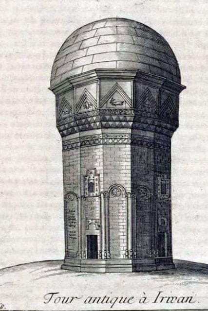 Երևանի մասին նկարագրությունում Շարդենը խոսում է մի բացառիկ աշտարակի մասին. «Ճարտարապետական տեսանկյունից առանձնահատուկ հետաքրքրություն է ներկայացրել մի հին աշտարակ, որի կառուցման թվականը և նպատակը մեզ առայժմ անհայտ է: